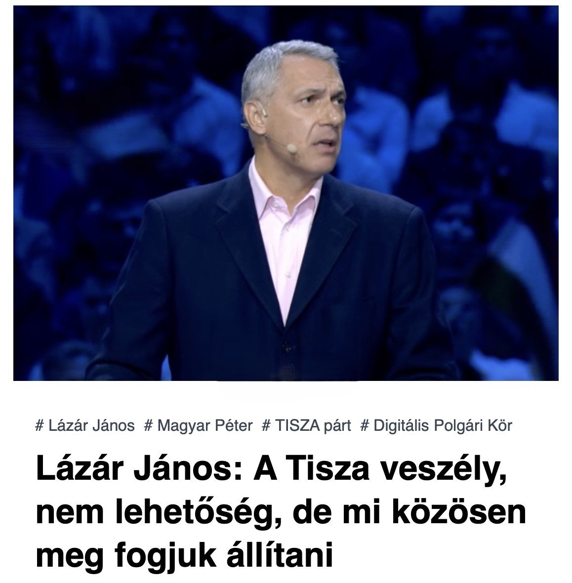 Ezt követően Magyar Péterről beszélt. Úgy vélte, a Tisza Párt elnöke Brüsszel érdekeit képviseli Magyarországon, „Brüsszel legújabb countrymenedzsere”, akit „látásból ismernek”, mert nemrég még „az első sorból tapsolt Orbán Viktornak”. Azt mondta, aki Magyar Péterre szavaz, az IMF-et, a multikat és a hiteleket választja. Idézett is: „Árad a Tisza, zavaros, nem tiszta”, majd arról beszélt, hogy a „zavaros víz” elviheti az anyák adómentességét, a 13. havi nyugdíjat, az olcsó vasúti tarifákat és a rezsicsökkentést. Úgy fogalmazott: